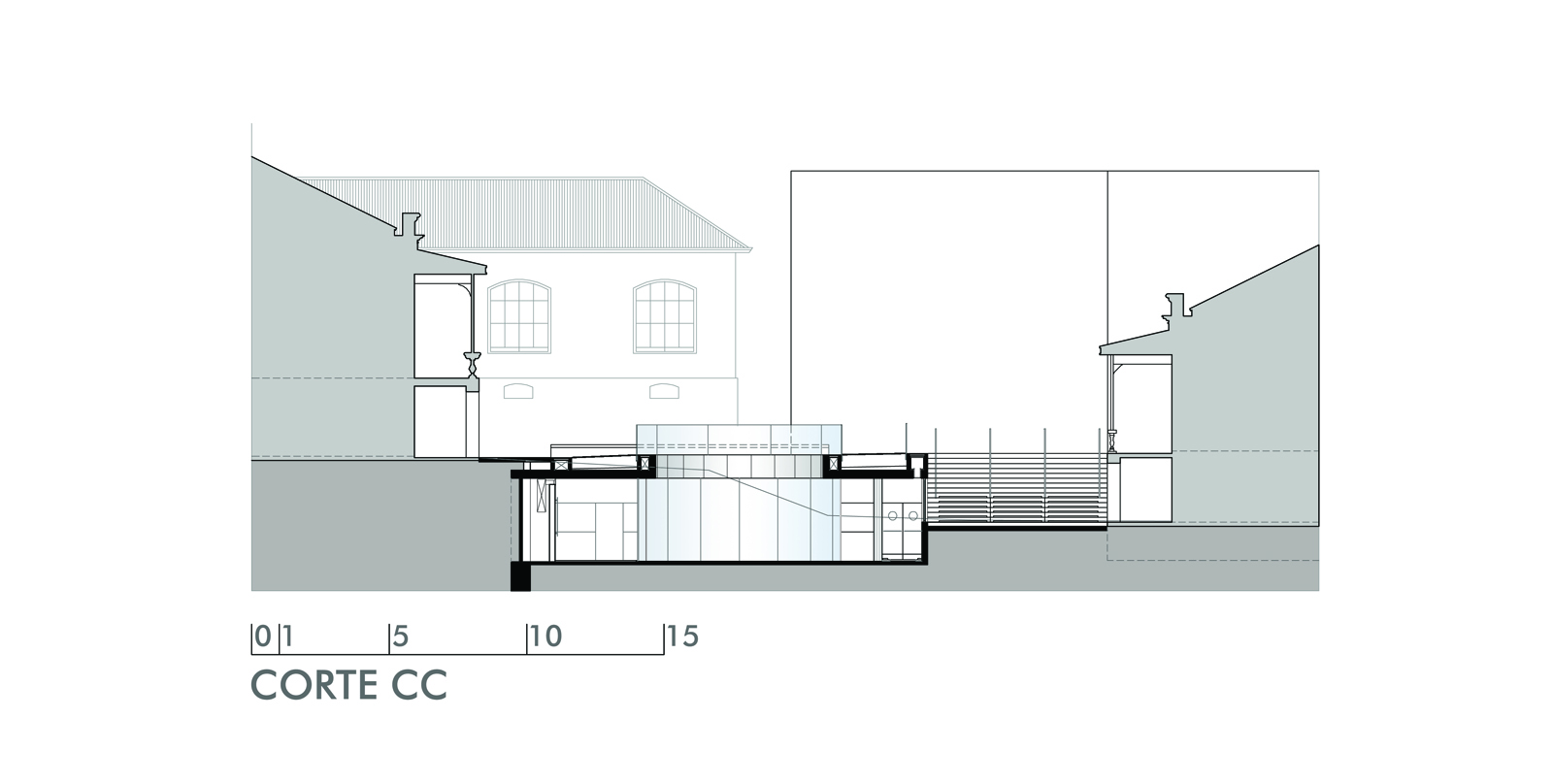 The building designed to house a new café for the Museum and the Public Archives of Minas Gerais starts with the judicious use of the free space between the two buildings which are important architectural examples built by the Building Committee of the new capital at the end of the 19th century. The complex's initial purpose was to house the Senate and the Finance Minister's residence.