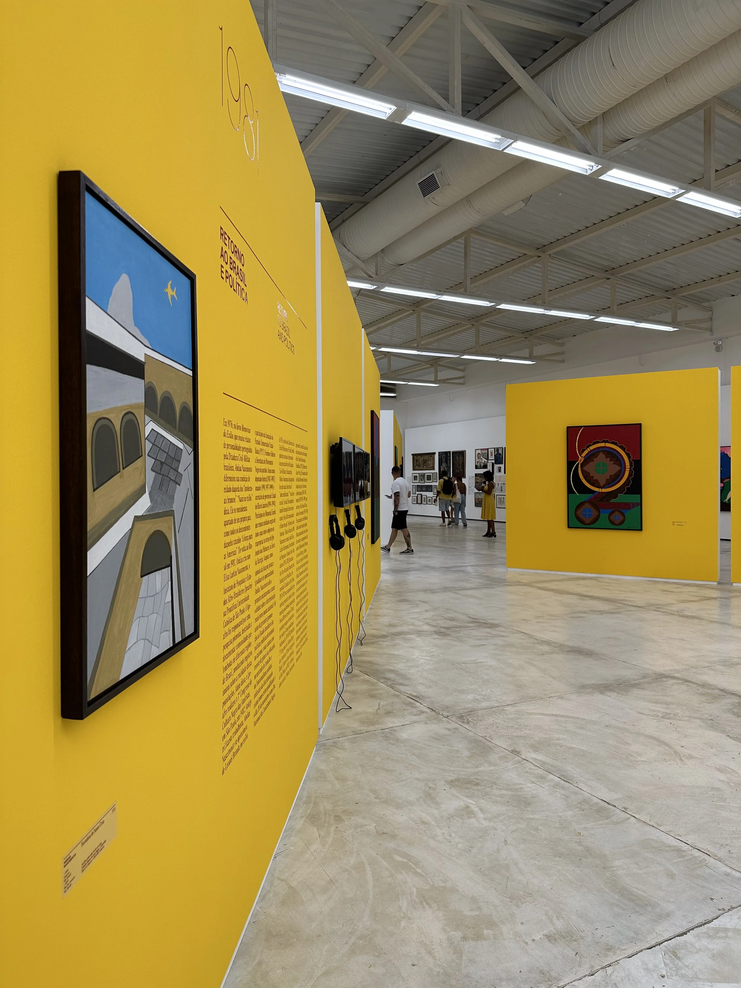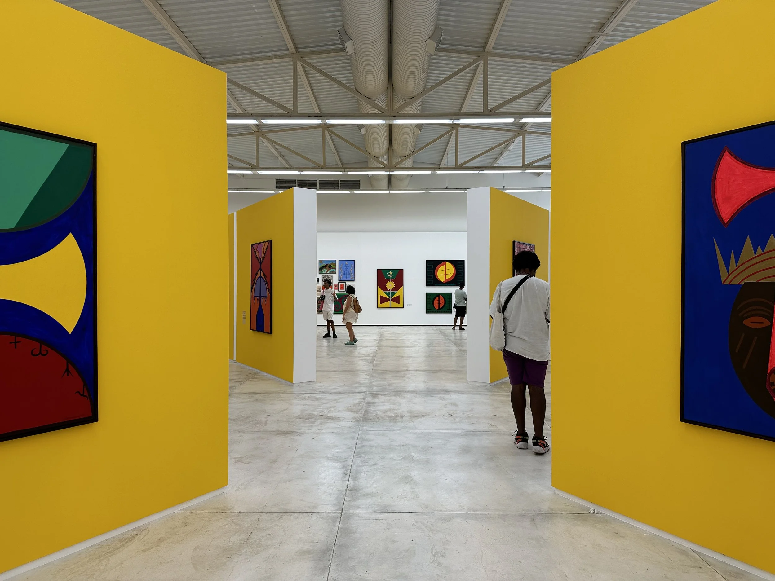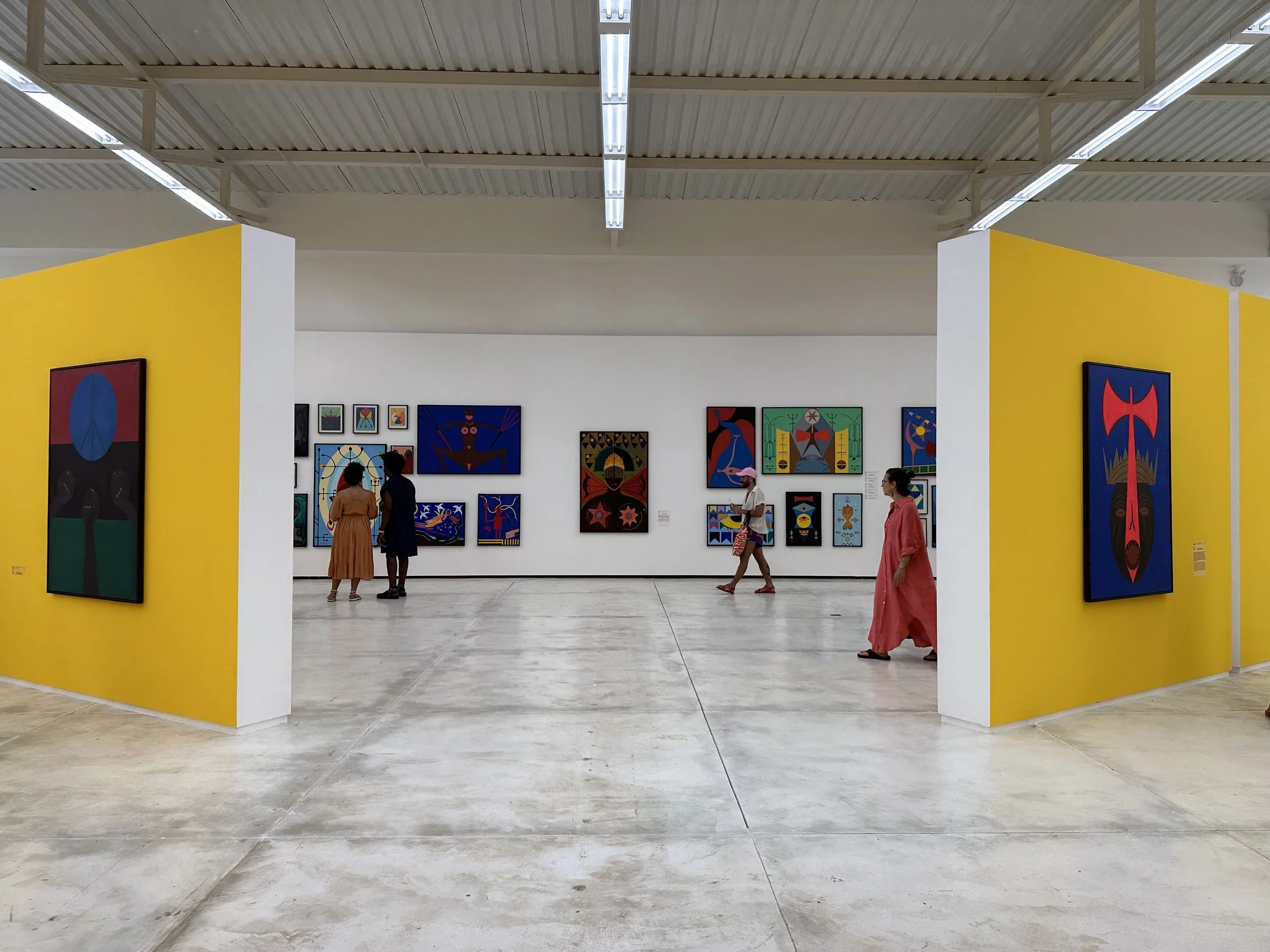 The exhibition design adopted as a principle the centrality of the Orishas in Nascimento’s work. Modular panels were designed and rearticulated for each act, inspired by sacred symbols: pontos riscados and the colors associated with the Orisha that governed the approach taken in each exhibit. Galeria Mata, which previously had been partitioned into rooms, was converted into a large hangar whose space was reconfigured for each exhibition.